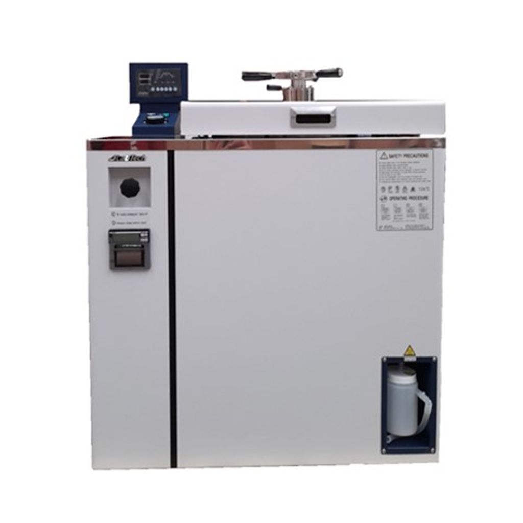 AUTOCLAVE VERTICAL CON CAPACIDAD 100L CONTROL DIGITAL CON MICROPROCESADOR, CICLO DE SECADO Y REGISTRADOR DE TEMPERATURA (1CH). INTERIORES DE ACERO INOXIDABLE, RANGO DE TEMPERATURA: AMBIENTE +5 A 132 °C, INCLUYE 2 CANASTILLAS PERFORADAS. MEDIDAS INTERIORES: 450 DIA X 620mm ALTURA. MEDIDAS EXTERIORES: 860 * 650 * 1,150mm (WXDXH mm), CONSUMO: 5 KW. OPERA CON 220V. MARCA LABTECH
