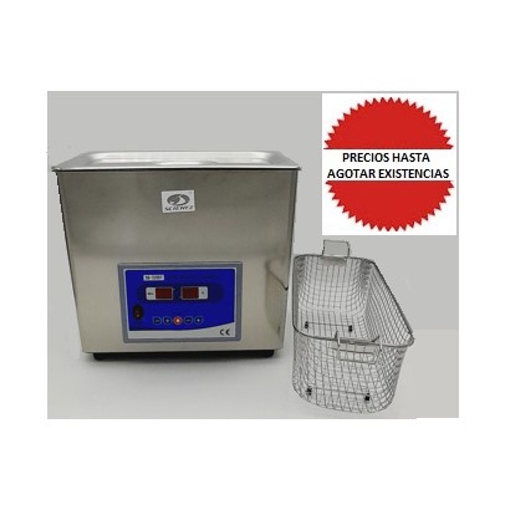 BAÑO DE ULTRASONIDO DIGITAL DE 6 LITROS , CONTROL CON MICROPROCESADOR, RELOJ DE 1- 99 MIN, RANGO DE TEMPERATURA 37 A 80°C, FREC. 40KHZ. TINA DE ACERO INOXIDABLE Y EXTERIORES DE PLASTICO. MEDIDAS INTERNAS: 30 X 15.5 X 15 cm. INCLUYE CANASTILLA. OPERA CON 110V. MARCA SCIENTZ
