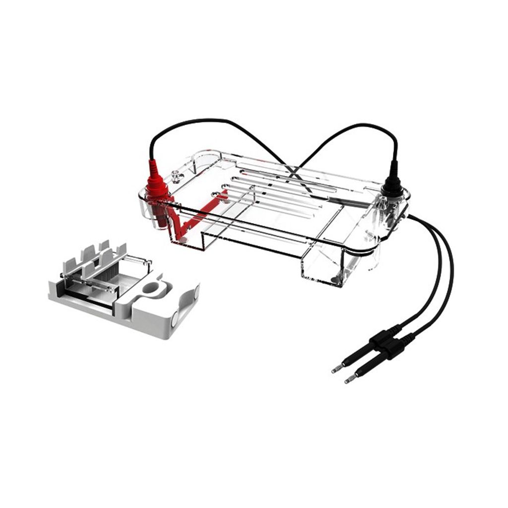 CAMARA HORIZONTAL DE ACRILICO MEDIDAS DEL GEL 70 x 60mm. CAPACIDAD DE BUFFER 300ml, PARA PEINES DE 1.0 Y 1.5mm, PARA MUESTRAS 6 O 22. INCLUYE CABLES, CHAROLA PARA GELES Y 2 PEINES DE 1.0 (6/11MUESTRAS)Y 2 DE 1.5 (6/11 MUESTRAS) MEDIDAS TOTALES 180*90*70mm. PESO 1.1K, MARCA LUZEREN