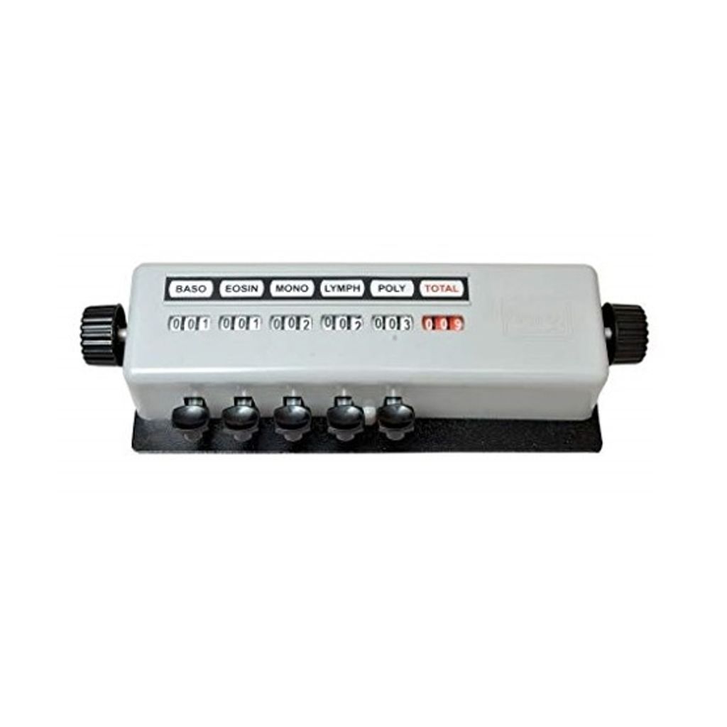 CONTADOR MECANICO PARA CELULAS. CAPACIDAD HASTA 999. LAS TECLAS TIENEN UNA ETIQUETA PARA IDENTIFICAR LA CELULA A CONTAR, INCLUYE TOTALIZADOR Y UNA PERILLA PARA RESTAURAR A CERO. FABRICADO EN PLASTICO DE ALTA RESISTENCIA QUIMICA. LUZEREN