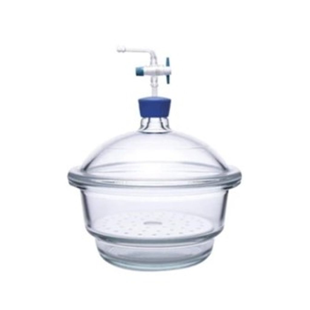 DESECADOR DE VIDRIO 300mm CON TAPA PARA VACIO , HECHO DE BOROSILICATO 3.3 DE ALTA RESISTENCIA AL CALOR, CUMPLE CON LOS ESTANDARES DE CALIDAD DIN 12491. TANTO LA TAPA COMO LA BASE SON ESMERILADAS Y SE ACOPLAN SIN FUGAS POR LO QUE NO REQUIERE EL USO DE GRASA . INCLUYE PLACA DE PORCELANA. ISOLAB