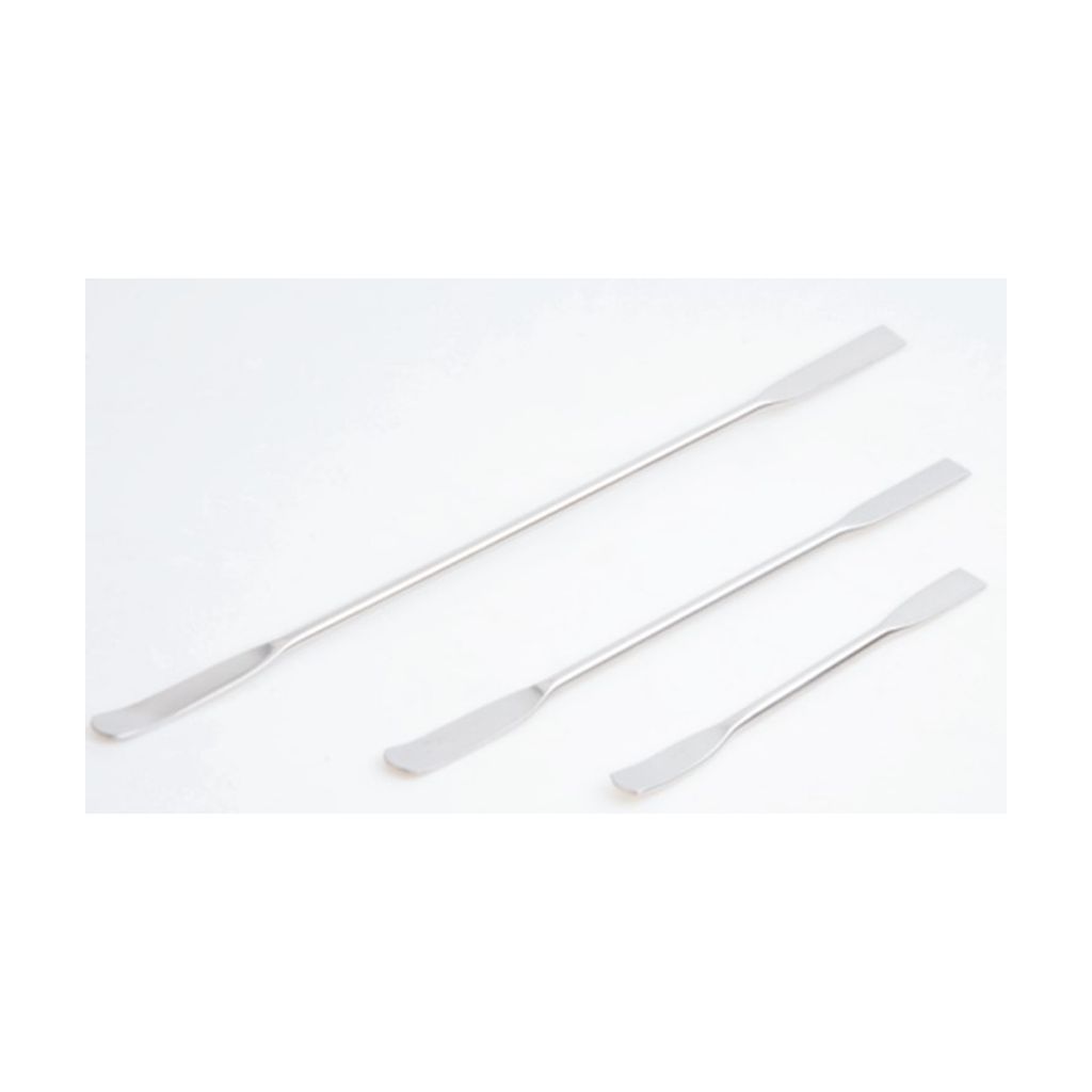 ESPATULA DOBLE DE ACERO INOX AISI304: UN EXTREMO REDONDO DOBLADO HACIA ARRIBA, EL OTRO CUADRADO, 160MM DE LARGO. LUZEREN