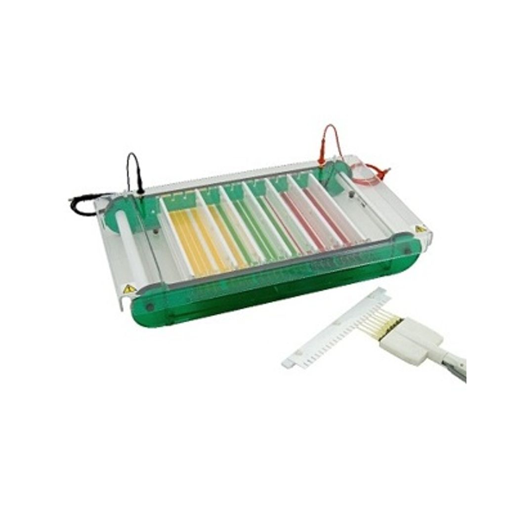 CAMARA PARA ELECTROFORESIS HORIZONTAL CON CHAROLA PARA GELES DE 25*30cm. INCLUYE PEINE DE 6*1.0mm CON 26 POZOS Y 2 EMPAQUES. MEDIDAS (W*L*H) 33*56*9 CM. OPERA CON 120V. MODELO MAXI PLUS, MARCA SCIE-PLAS FAB. U.K.