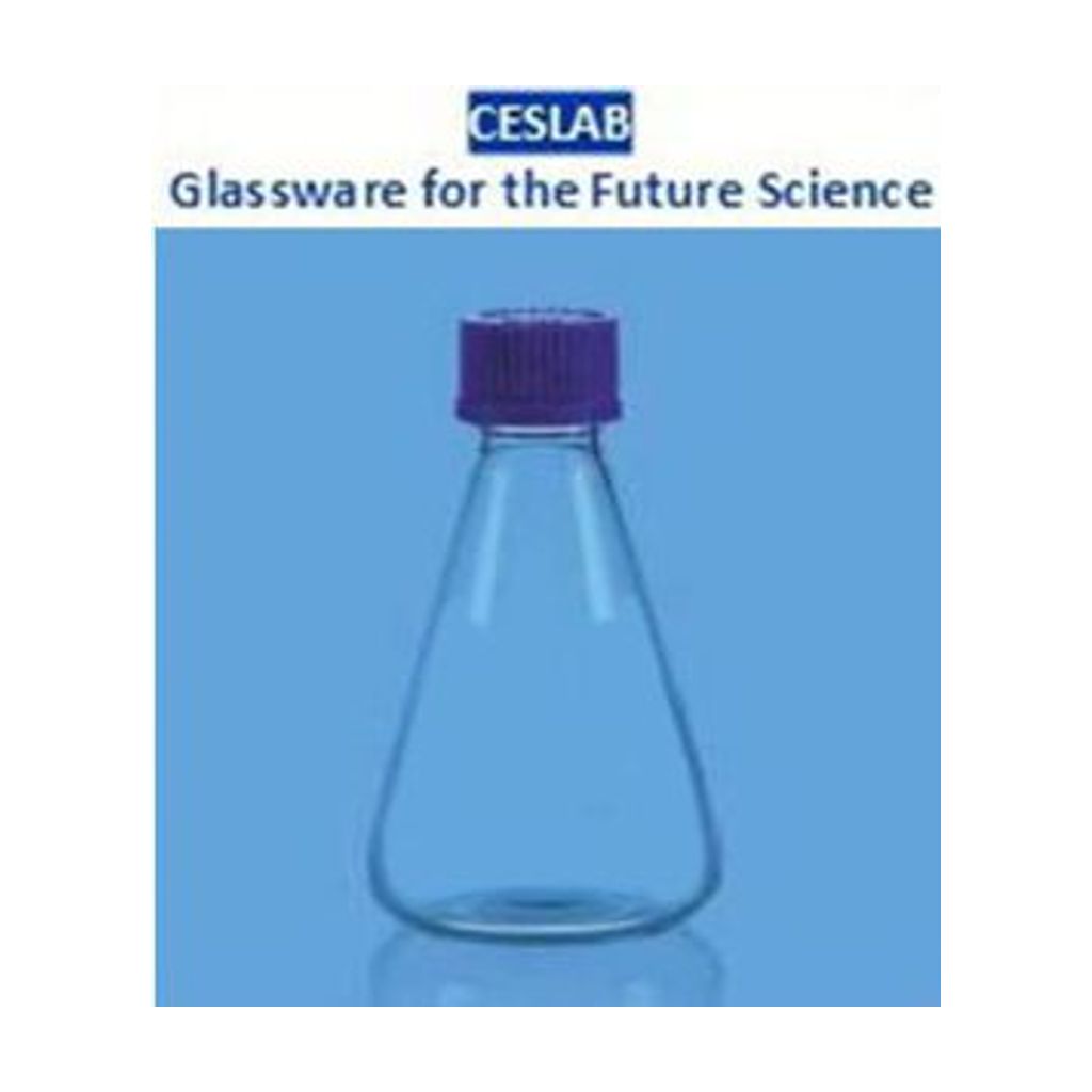 MATRAZ ERLENMEYER 250ML DE VIDRIO BORO 3.3 CON TAPA ROSCA PP Y EMPAQUE GL-45, AUTOCLAVABLE. CESLAB