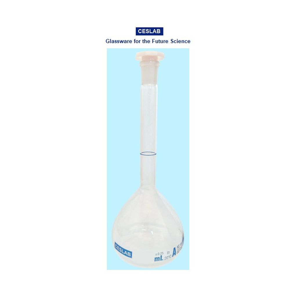 MATRAZ VOLUMETRICO DE VIDRIO 20ml CLASE "A" TOLERANCIA +/- 0.040ml, MEDIDAS 110 H X 10mm(CUELLO) , VIDRIO BORO 3.3 , TAPON DE PE NS 10/19. CON CERTIFICADO INDIVIDUAL CESLAB