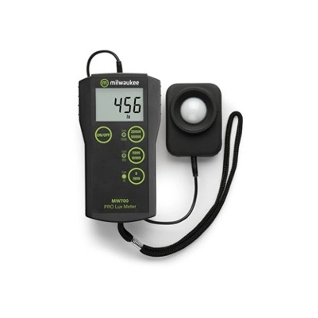 MEDIDOR DE LUZ PORTATIL EN TRES RANGOS: 0.000- 1999, 2000- 19,999 Y 20,000- 50,000 Lux, CON RESOLUCION DE 1, 10 Y 100 Lux, LONGITUD DE ONDA MAXIMA: 560nm, SENSOR DE SILICON A PRUEBA DE AGUA, PEGADO AL MEDIDOR Y CABLE DE 1.3M, CONDICIONES DE OPERACION: 0- 50°C, RH MAX: 95%. PARA USARSE EN ACUARIOS Y ACUACULTURA, HIDROPONIA, AGRICULTURA, HORTICULTURA Y ANALISIS AMBIENTAL. MIDE: 14.23 x 7.88 x 3.18cm, PESA 266 G. INCLUYE BATERIA ALCALINA 9V, PARA 150 HRS. MILWAUKEE