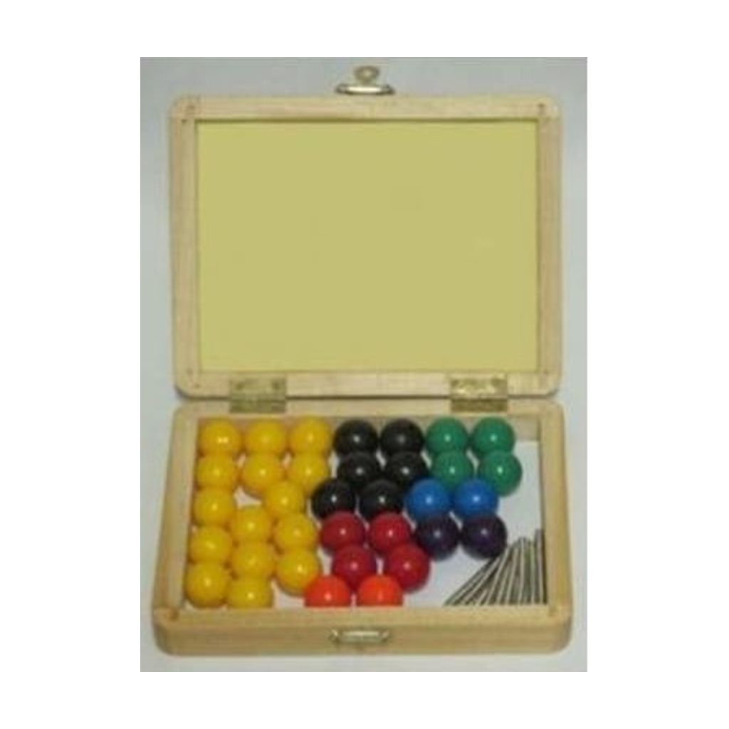 MODELO MOLECULAR PEQUEÑO. INCLUYE 35 BOLAS 15 AMARILLAS 4 VERDES 6 NEGRAS 2 AZULES 2 MORADAS 2 NARANJAS 4 ROJAS Y 30 CONECTORES