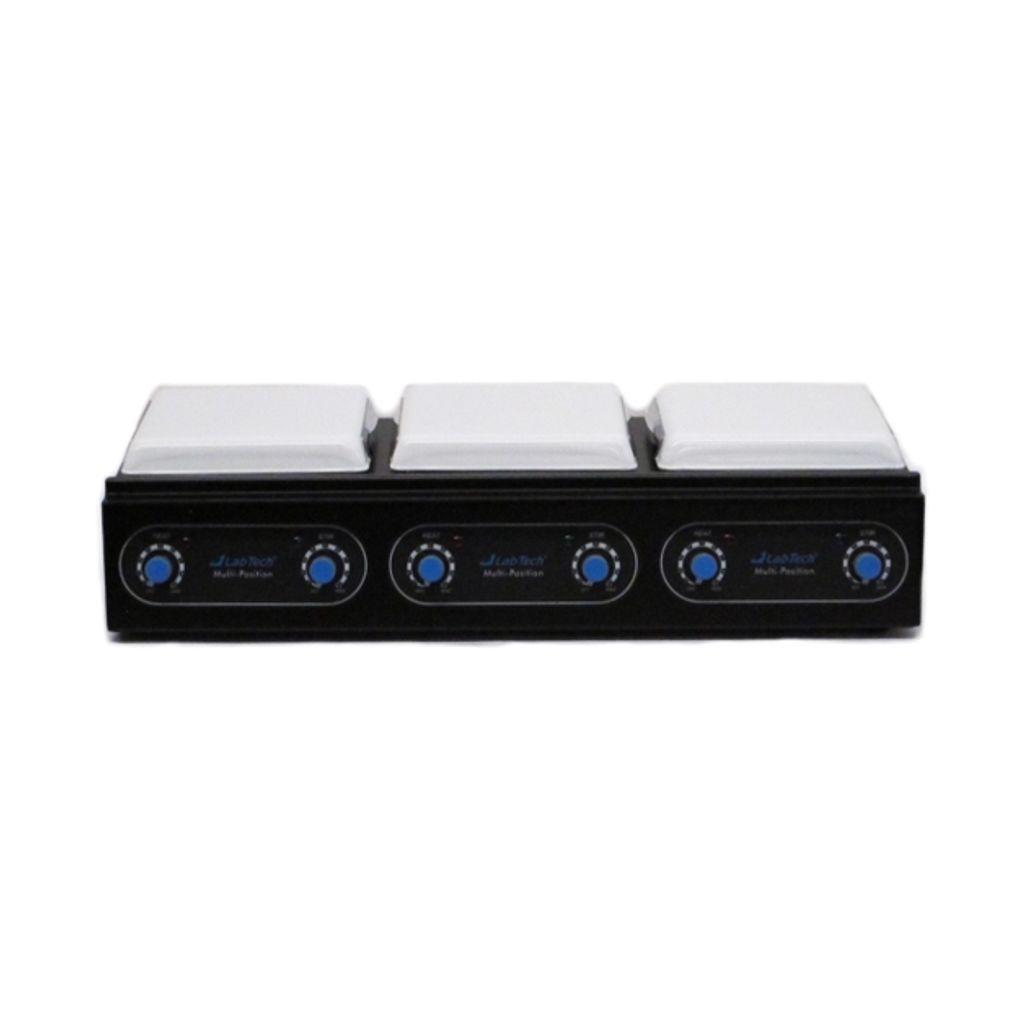 PARRILLA CON AGITACION DE 3 PLAZAS, CONTROLES ELECTRONICOS INDIVIDUALES, SUPERFICIES DE CERAMICA RESISTENTES A LA CORROSION 19*19cm, RANGOS DE OPERACION: TEMPERATURA AMBIENTE +5 A 450ºC Y 60 A 1500rpm. OPERA CON 110V, 60Hz. MARCA LABTECH