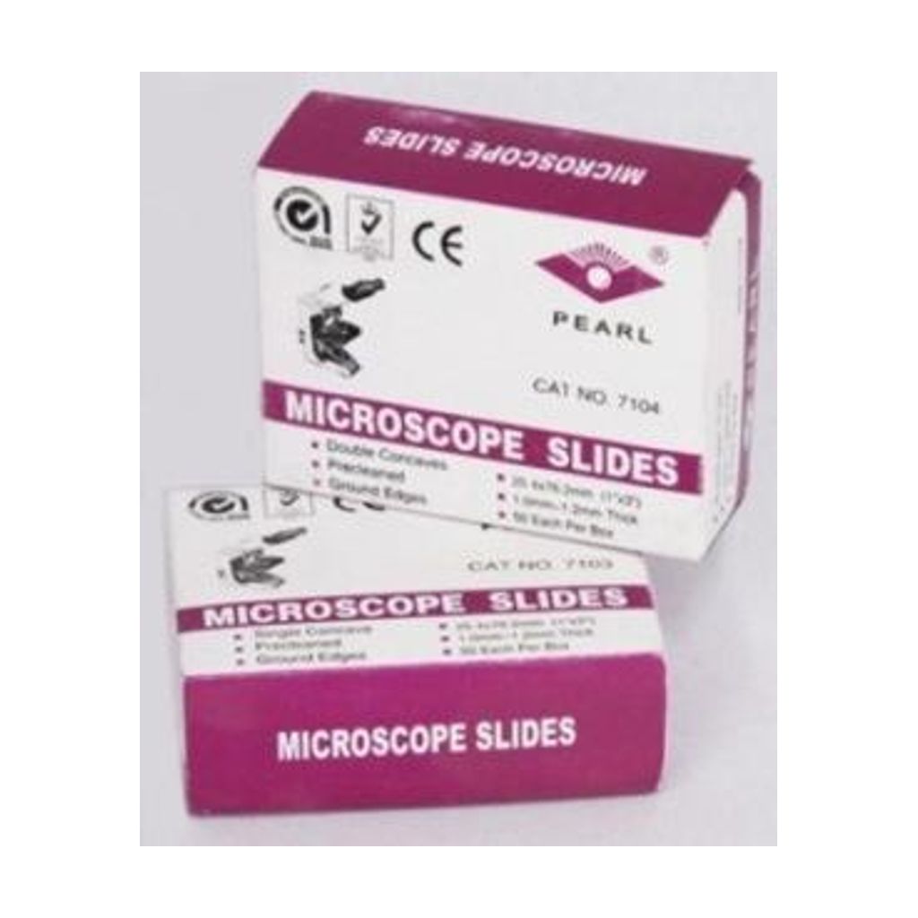 PORTAOBJETOS CON 1 EXCAVACION, DE VIDRIO PRELAVADO 1.0-1.2ML. EMPACADO AL VACIO. 25MM*75MM. MARCA PEARL