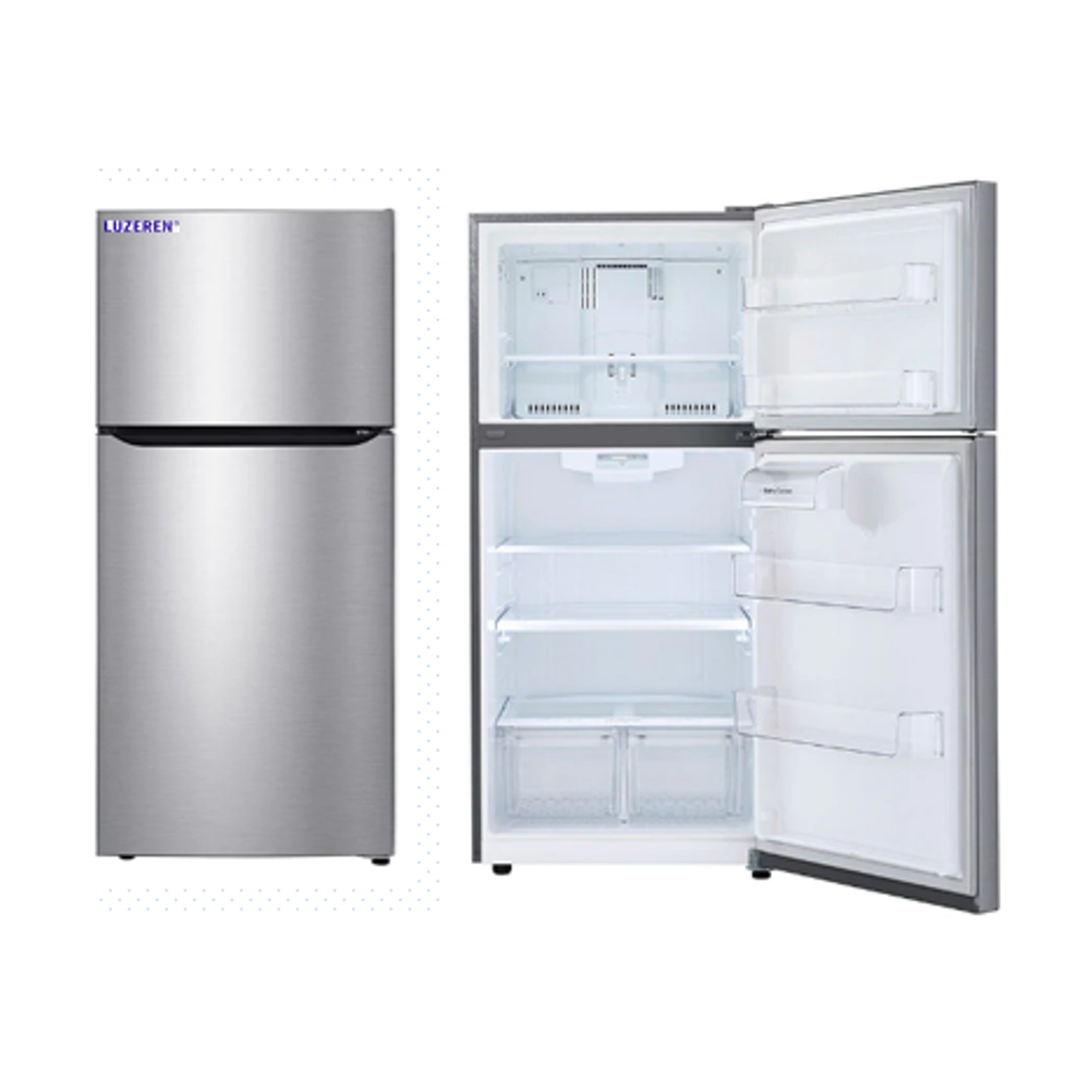 REFRIGERADOR VERTICAL CON CONGELADOR EN LA PARTE SUPERIOR. PUERTA DE ACERO INOXIDABLE. CAPACIDAD TOTAL 572L (20.2 CUFT) , CONGELADOR 152L (5.36 CUFT). INCLUYE 3 ENTREPAÑOS PESO TOTAL 85.5K. MEDIDAS 756x848x1679mm , ALIMENTACION 115V. 50/60 HZ. MARCA LUZEREN