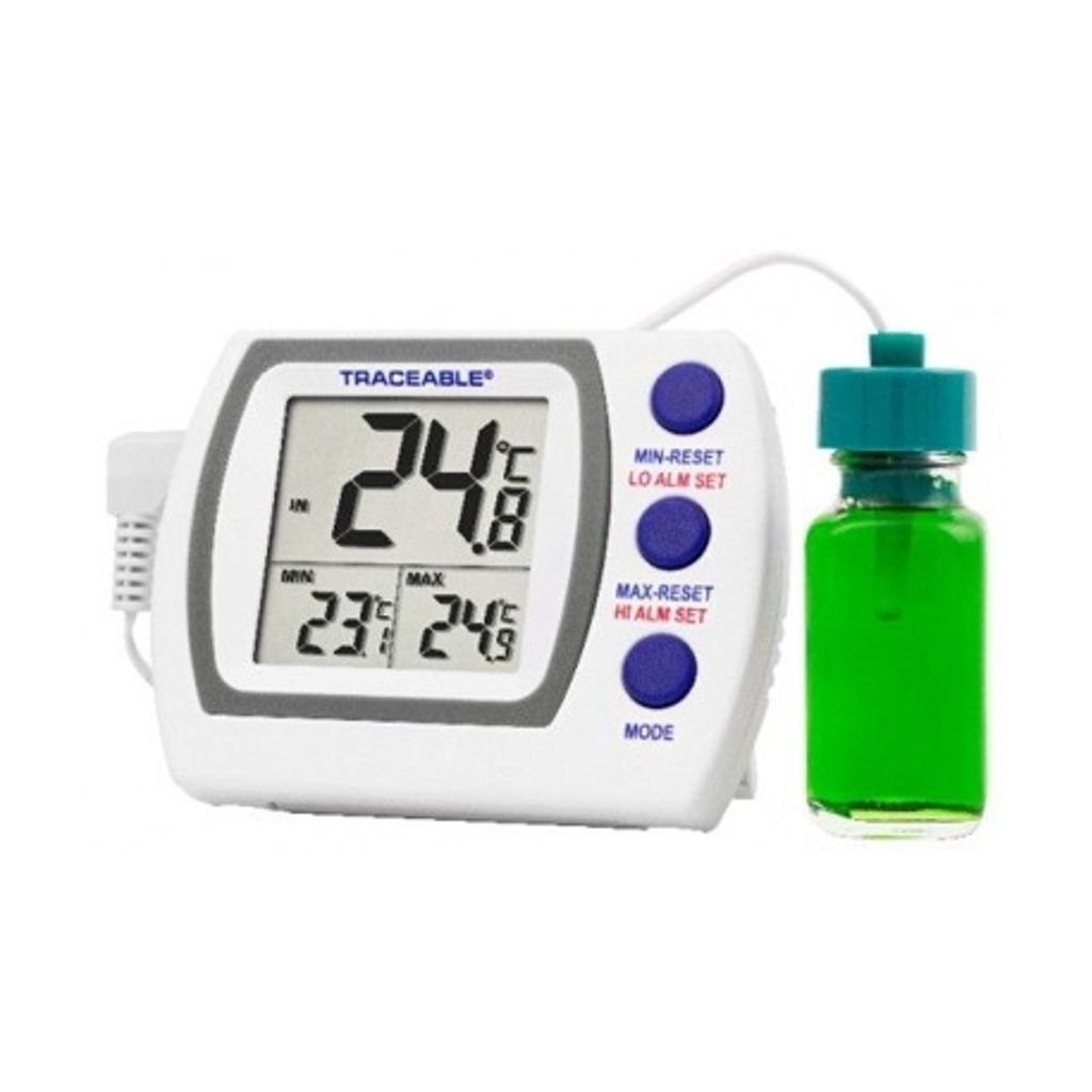 TERMOMETRO DIGITAL PARA CONGELADOR/REFRIGERADOR: -50 A 70°C, RESOLUCION: 0.1°C, SENSIBILIDAD: +/- 0.5°C, A LA VEZ PRESENTA LECTURAS MAX/MIN, EL SENSOR ESTA PROTEGIDO CON UN FRASCO RELLENO DE GLICOL. MIDE: 8.2x 6.35x 1.58cm.. INCLUYE CERTIFICADO DE TRACEABILIDAD NIST. (4227CC) COLE-PARMER