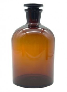 FRASCO PARA REACTIVO AMBAR DE 1L, DE VIDRIO NEUTRO, BOCA ANGOSTA CON TAPON ESMERILADO DE 31mm x OD 106mm x ALTO 190mm. LUZEREN