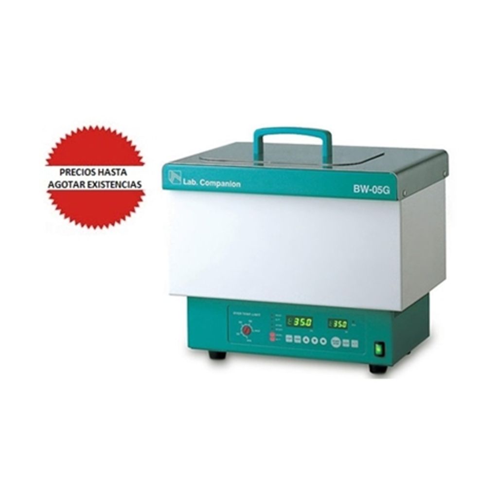 BAÑO MARIA DE 5 L, DIGITAL CONTROLADO POR MICROPROCESADOR PID, PANTALLA DUAL DE LED, ALARMA, FUNCION AUTOAJUSTE, INTERRUPTOR TERMICO DE SEGURIDAD. TAPA, CUBIERTA, TINA Y PARRILLA DE ACERO INOXIDABLE. EXTERIOR DE LAMINA CON ACABADO EN PINTURA BICAPA HORNEADA DE ALTA RESISTENCIA QUIMICA. MEDIDAS INTERIORES: 230x 150x160mm ((WXDXH) MEDIDAS EXTERIORES: 360x 250x 330mm (WXDXH) . CONSUMO 700W. ALIMENTACION 120V, 60 HZ. 5.8A LAB COMPANION
