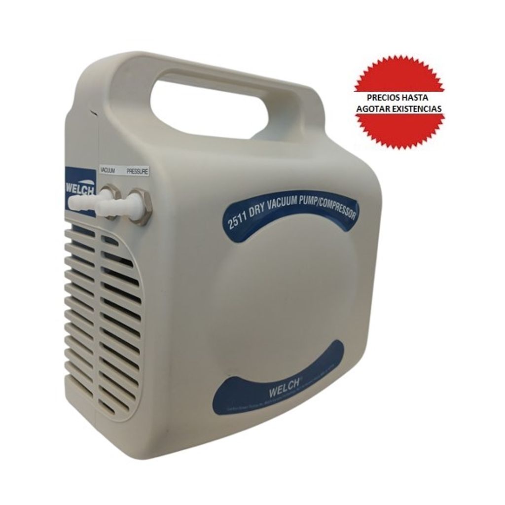 BOMBA DE VACIO PORTATIL Y SILENCIOSA DE PISTON WOB-L LIBRE DE ACEITE, VACIO HASTA 21.3pulg DE Hg. DESPLAZAMIENTO DE AIRE 11 L/MIN, PRESION MAX 33 PSI, MOTOR 1/30 HP, CONEXIONES 3/16pulg. PESO: 2.7KG, DIMENSIONES (L*W*H): 180*110*210MM, OPERA CON 115V, 60Hz . MARCA WELCH # 2511B-01