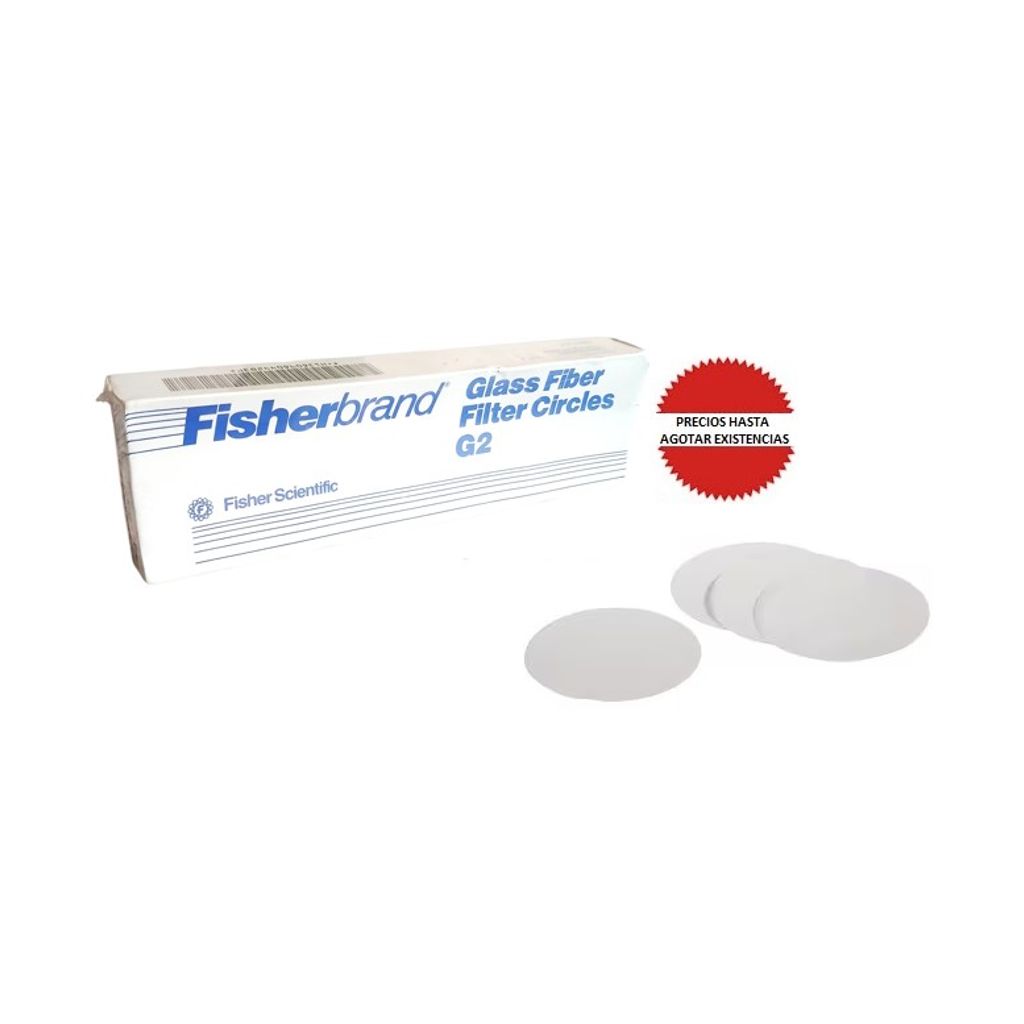 FILTRO DE FIBRA DE VIDRIO G2: RETIENE PARTICULAS DE 1um, RESISTE TEMPERATURAS DE 500°C, GROSOR: 0.66mm, CIRCULOS DE 4.5CM, 100/PAQ. FISHER
