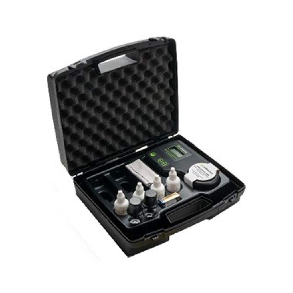 FOTOMETRO PARA MEDIR pH: 6.5- 8.0, CLORO Y CLORO TOTAL: 0.00- 5.00 mg/L; RESOLUCION pH: 0.1 Y PARA CLORO: 0.01 mg/L DE 0.00- 3.50 mg/L Y 0.10mg/L ARRIBA 3.5mg/L; SENSIBILIDAD: pH ± 0.1 @ 7.2 pH, CLORO: ± 0.06 mg/L, ADAPTADO DE ACUERDO A LOS METODOS USEPA 330.5 & STD 4500-Cl G (Cl) ASI COMO ROJO FENOL PARA pH. FUENTE DE LUZ: LAMPARA DE TUNGSTENO, FOTOCELDA DE SILICON ANCHO DE BANDA DE 525nm. INCLUYE 2 CELDAS DE VIDRIO ( MI0001 ) Y BATERIA DE 9V. MIDE: 191x 107x 51mm, PESA 1.22 KG. MILWAUKEE