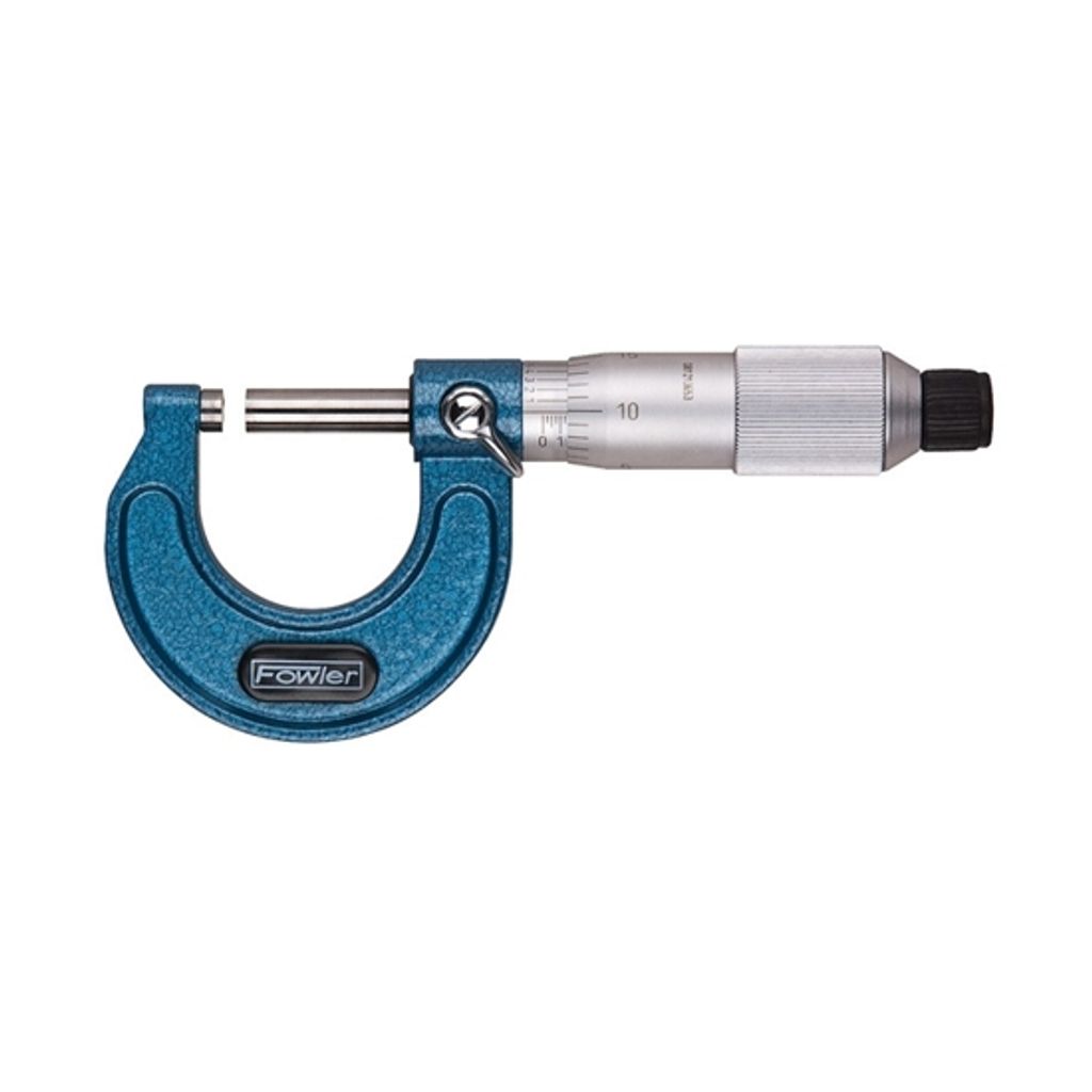 MICROMETRO METALICO PARA EXTERIORES (MARCO C), ESCALA VERNIER GRADUADA DE 0-25MM X 0.01MM, FRENO, PUNTAS DE CARBURO PLANAS Y PARALELAS PARA MEDICIONES PRECISAS, CARRACA MOLETEADA. FABRICADO EN ALUMINIO DE ALTA RESISTENCIA Y ACERO. INCLUYE LLAVE Y ESTUCHE RIGIDO. MARCA FOWLER