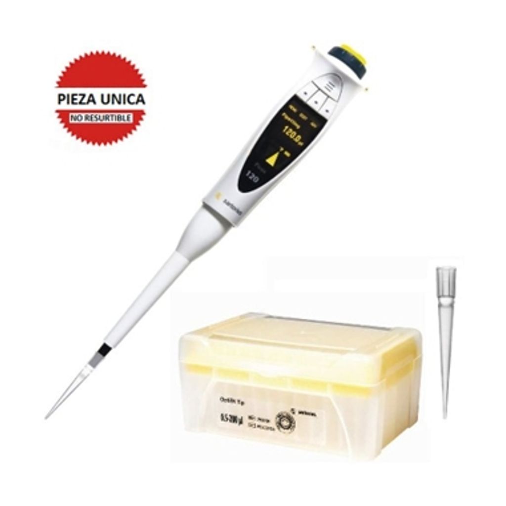 MICROPIPETA ELECTRONICA DE UN CANAL DE 5-120ul, INCREM 0.1ul, INCLUYE 1 RACK DE PUNTAS DE P.P. DE 0.5-200UL OPTIFIT SIN FILTRO, NO ESTERILES Y ADAPTADOR AC/DC. MODELO PICUS 735041 SARTORIUS