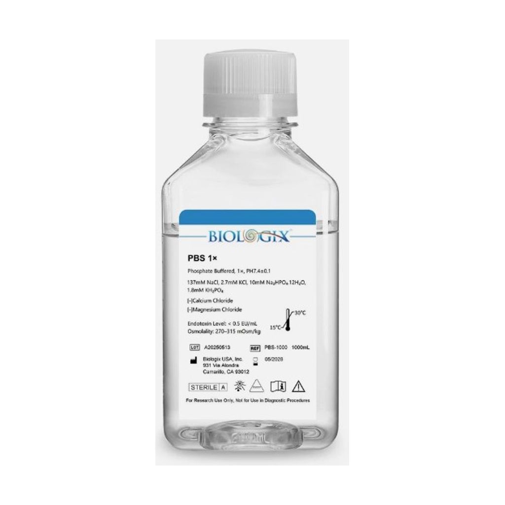 PBS BUFFER (1X) pH7.4 ESTERIL, BAJO DE ENDOTOXINAS, para Cultivo Celular 500ML. BIOLOGIX