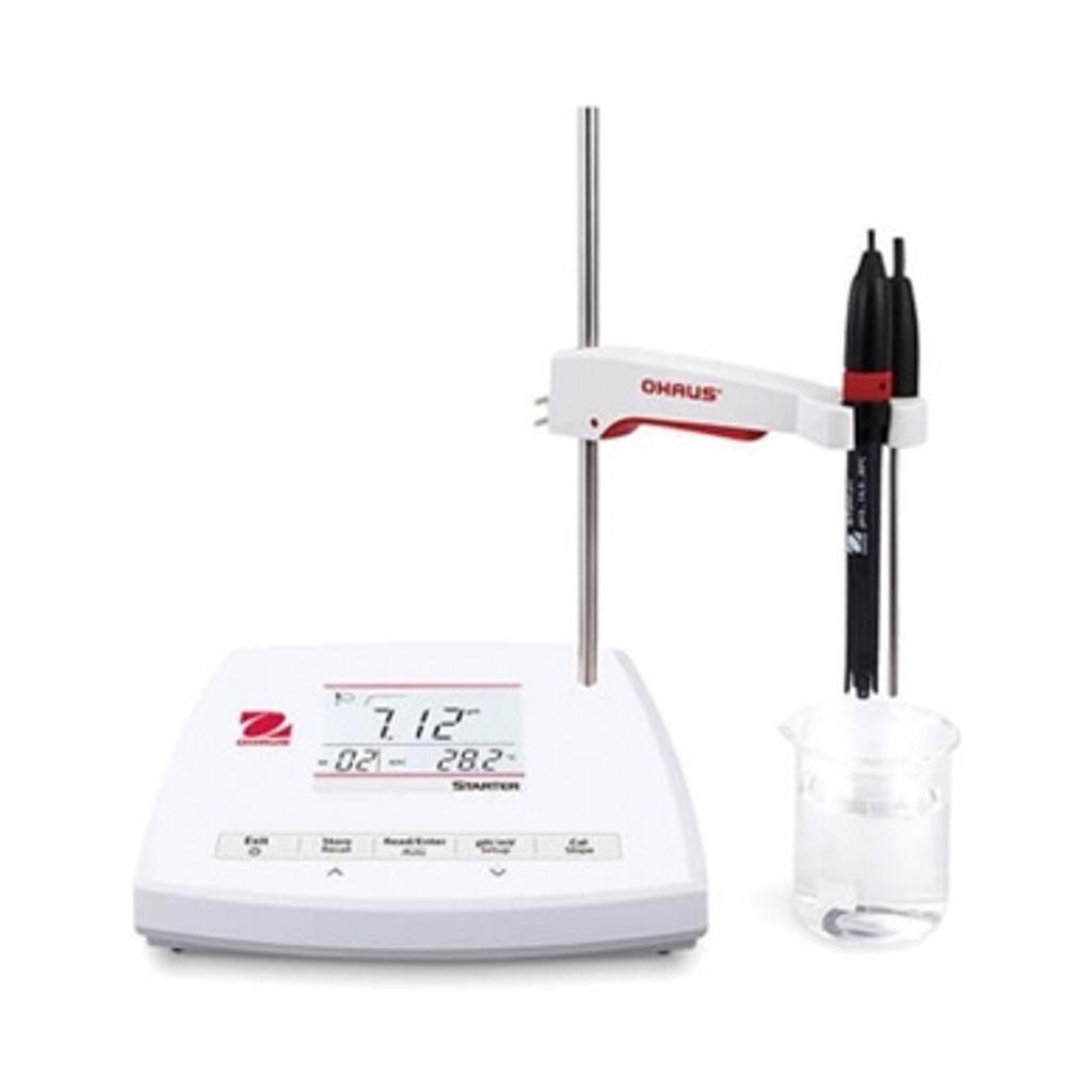 PHMETRO DE MESA BASICO PARA MEDICIONES DE PH DE RUTINA Y ORP . RANGO 0.00 A 14.00 +/- 0.01, mV: -1999 A 1999 +/-1 Y TEMP: 0. A 100°C +/- 0.5, RESOLUCIONES: 0.01pH, 1mV Y 0.1°C. PANTALLA DE LCD DE 3.5" RETROILUMINADA. CON CALIBRACION DE 1- 3 PUNTOS , MEMORIA PARA 99 MEDICIONES Y ULTIMA CALIBRACION, MEDIDAS 220 x 165 x 79mm, OPERA CON 100-240V , INCLUYE ELECTRODO BNC ST320 Y BUFFERS 4 x 50ml. MODELO STARTER, MARCA OHAUS