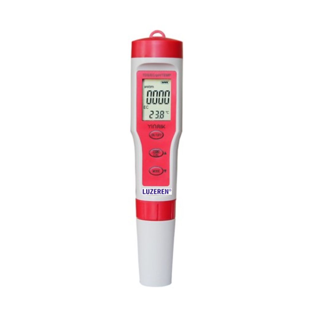 PHMETRO DIGITAL DE BOLSILLO 4-1, MIDE: pH/CE/TDS/TEMP. RANGOS : pH 0.00 A 14.00 PRECISION ±0.01pH, RESOLUCION 0.01pH; CONDUCTIVIDAD EC 0 -19990 µS/cm , TDS : 0- 19990 ppm , TEMPERATURA 0.1 A 60.0 °C .CALIBRACION EN 3 PUNTOS (6.86 & 4.00 & 9.18PpH). MEDIDAS 37 x 180 x 30mm. PESO 98g. OPERA CON 3 BATERIAS ALR44 1.5V. MARCA LUZEREN