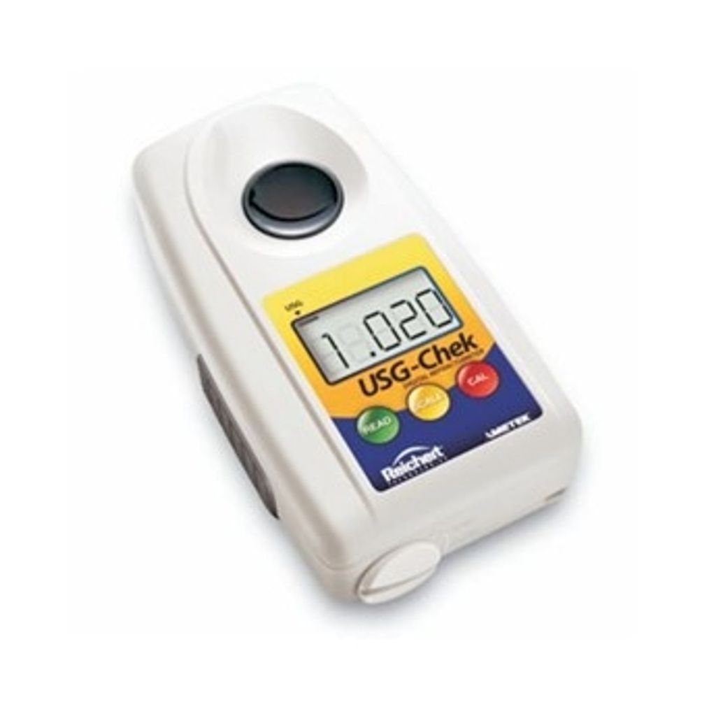 REFRACTOMETRO DIGITAL PORTATIL CLINICO, PARA MUESTRAS DE ORINA. MODELO PANTALLA LCD DE 5 DIGITOS, PROTECCION AL AGUA IP65, PRISMA DE CRISTAL.SE CALIBRA CON AGUA. RANGO DE OPERACION 1 A 1.04 PRECISION 0.005 PESO 100g OPERA CON 2 BATERIAS AAA. MODELO USG-CHEK FISHER, MARCA REICHERT