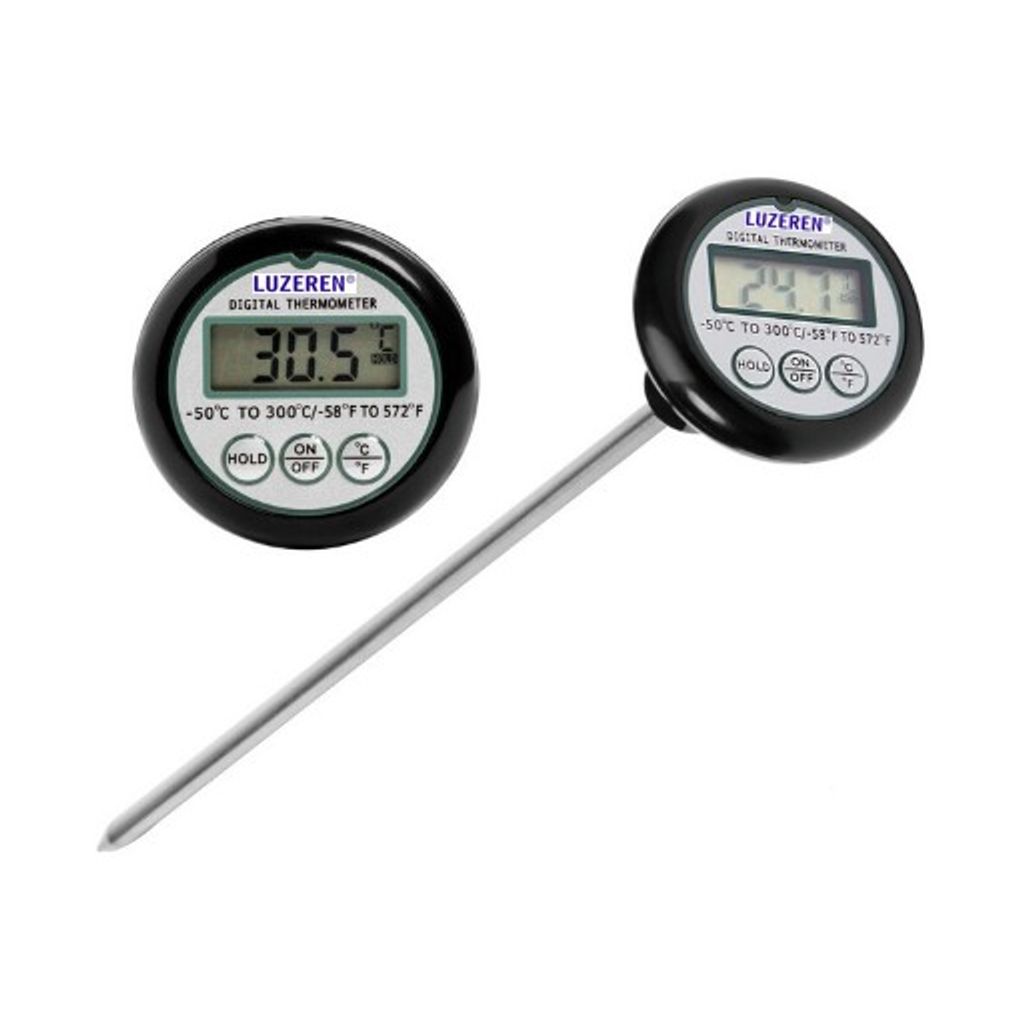 TERMOMETRO DIGITAL PARA CARNE -50 A 300°C (+/- 1°C DE 0 A 100°C), CON PANTALLA LCD, SONDA DE ACERO INOXIDABLE Y CARATULA DE PLASTICO ABS NEGRO, OPERA CON BATERIA DE 1.5V. MIDE 190x 40x 40mm, PESA 33G. LUZEREN