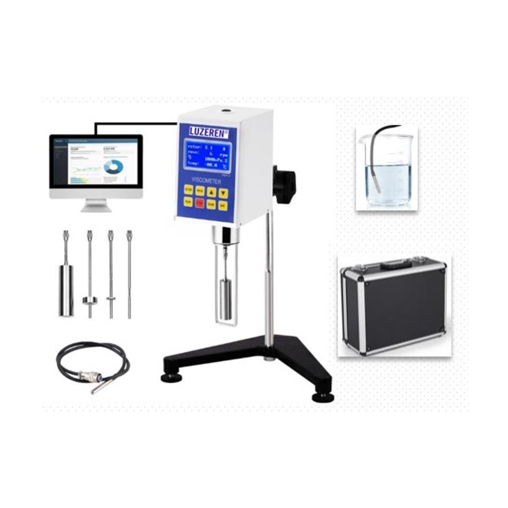 VISCOSIMETRO ROTATORIO CON MICROPROCESADOR. PANTALLA LCD RETROILUMINADA EN AZUL, CON 4 ROTORES, NUM 1, 2, 3 Y 4, RANGO DE VISCOSIDAD: 10-6,000.000 mPa.s, (1mPa.S=1cp), precision +/- 3% , 9 VELOCIDADES 0.1,0.3,0.6,1.5,3,6,12,30,60 RPM. TEMPERATURA DE OPERACIÓN 5-35°C. HUMEDAD RELATIVA NO MAYOR DE 80%. TIENE PUERTO RS232 PARA SALIDAD DE DATOS . El PAQUETE INCLUYE, EQUIPO, SOFTWARE, JUEGO DE ROTORES (4), ADAPTADOR DE VOLTAJE, MALETIN PROTECTOR, SOPORTE, PINZA E INSTRUCTIVO (en inglés) OPERA CON 100-240, 50/60 HZ. MARCA LUZEREN